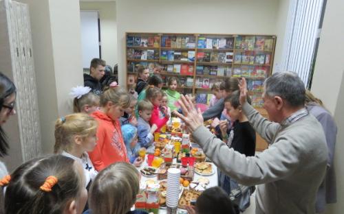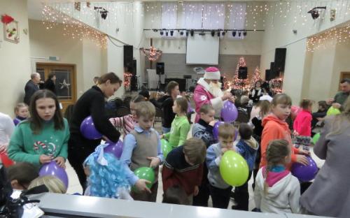 Пакуль бацькі рыхтавалі пачастунак, дзеці гулялі з Дзедам і Снягуркай, спявалі калядныя спевы, удзельнічалі ў конкурсах і атрымлівалі прызы.
